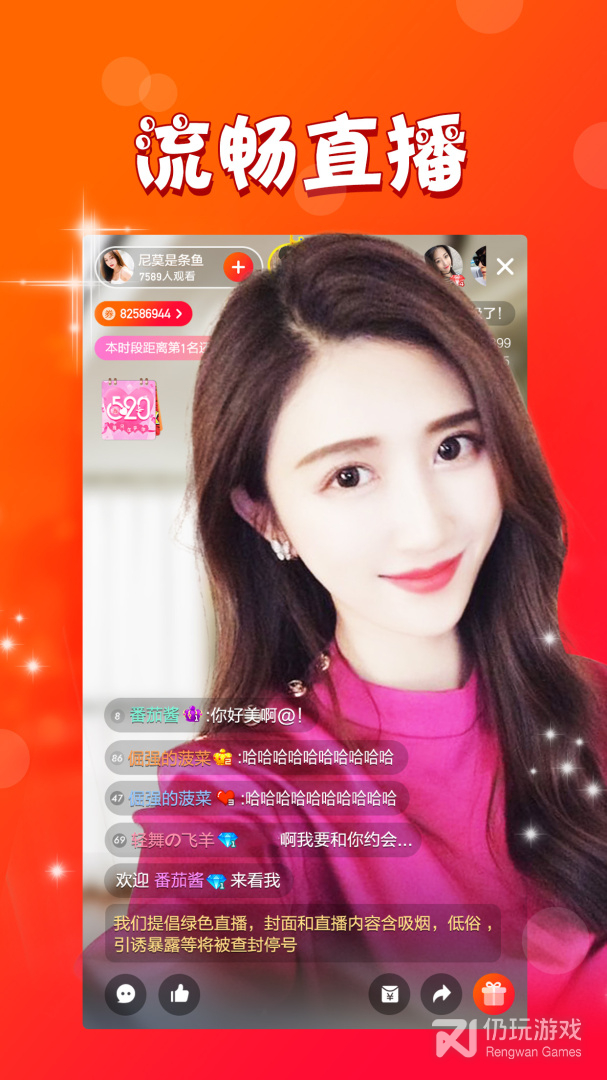 【互动玩法】 全新式的互动体验,多元化的线上玩法,汇集全国各地的超级美女主播,全民互动聊天。