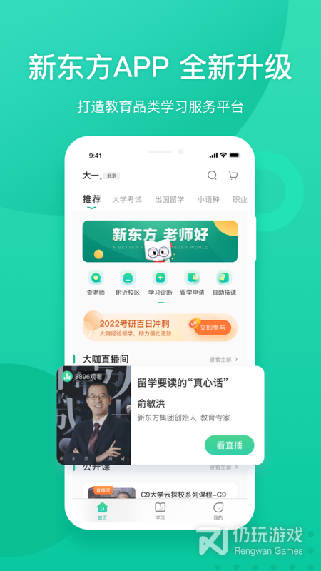 新东方App涵盖学员课前课中课后的所有学习功能,提供口语测评、在线资料、绘本馆、错题本等核心的学习内容和学习工具,是新东方学员的一站式学习平台。