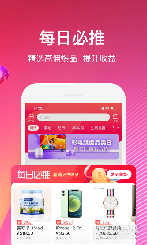 每日精选出当日爆款高佣商品,让你可以实现一键分享,简单赚钱。更有渠道专享优惠券、优惠商品等你来领,让优惠省钱变得更简单。