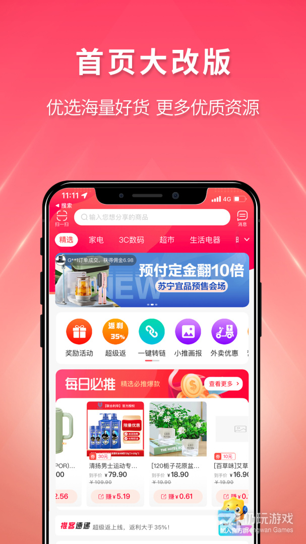 苏宁推客是非常实用的购物返利软件,在这里你不仅可以购买到十分优惠的商品,还可以通过分享商品链接来轻松赚钱,买的越多,返的越多。你还在等什么,赶快下载苏宁推客,一键分享商品的链接吧。