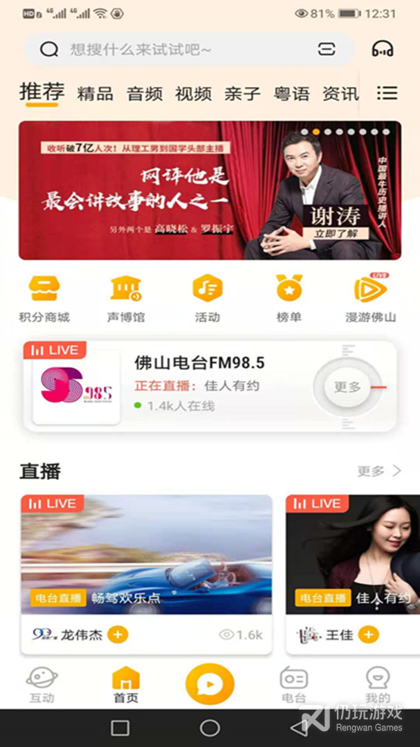 【直播互动】支持佛山电台等珠三角多套频率全天候直播和七天回放;