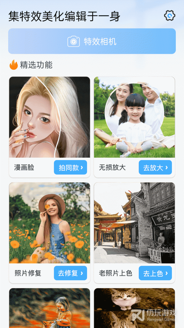 百变特效相机是一款功能强大的趣味相机应用,包含变老相机、童颜相机、漫画特效、一键切换背景等各种酷炫功能,操作简单,快速上手,一键制作各种好玩的照片