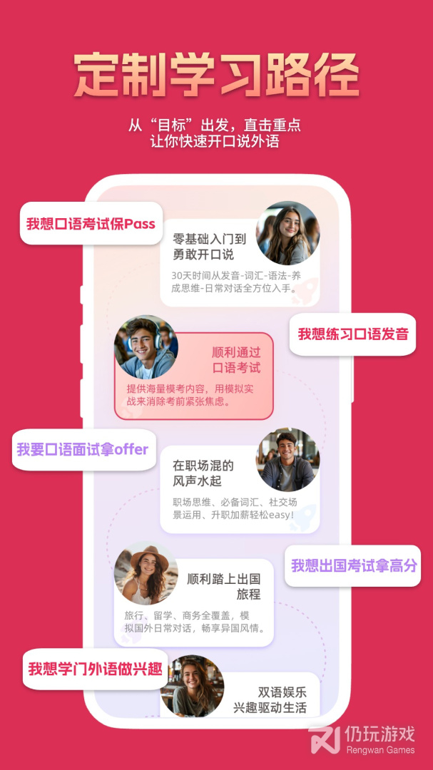 全球说是上亿人都在使用的外语学习神器,你可以在这里学习到任何一个国家或者地区的语言,系统化的学习方式,让你可以在两百个课时之内轻松掌握一门外语。智能的AI学习系统、个性化的学习方案和专业的名师外教全程助力你的学习。
