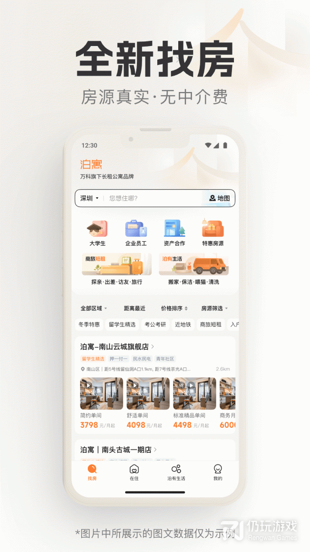 泊寓是专为在外漂泊的青年群体而推出的租房服务平台,业务已经覆盖了国内各大城市。这里所有的房源都是真实有效的,没有任何中介,用户可以通过软件来进行VR看房,全方位的了解每一个房子的详情。所有房源都是配套设施齐全的,用户可以直接拎包入住。