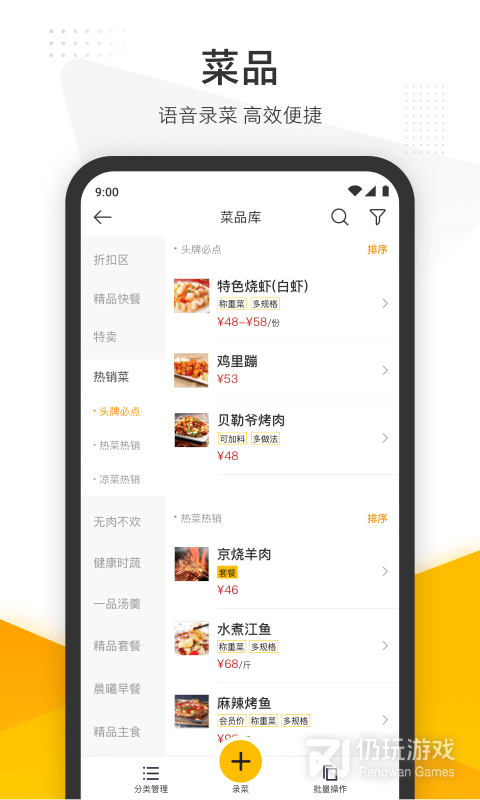 2、快速录菜:轻松对于自己平台上的菜单数据进行管理,可以进行录菜,还可以删菜。