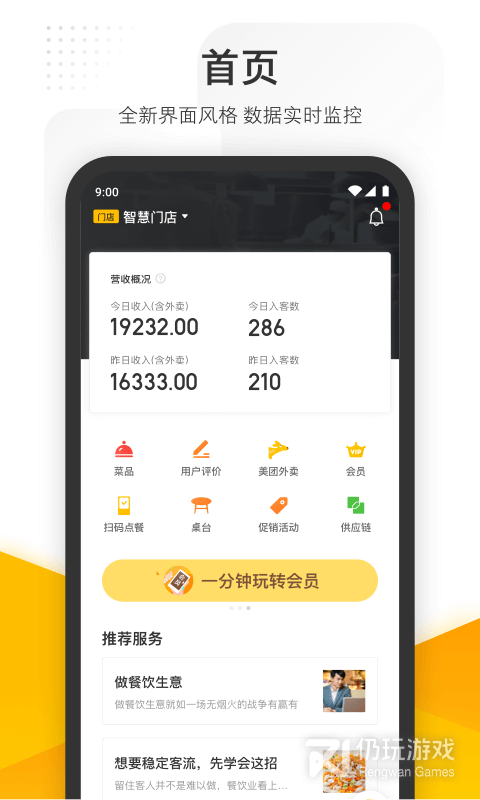 美团管家是可以让商家在手机上管理自己餐饮店铺的软件。商家可以在这里一键查看店铺的营业报表,了解哪些菜品比较受到大家的欢迎。可以在这里快速查看和回复用户们的评价,设置店铺内的优惠活动,发放各种优惠券,更加轻松的管理自己的店铺。