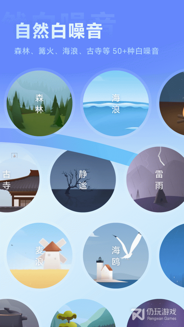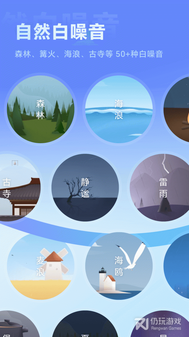 - 自然声音、冥想音乐、场景声音、ASMR等帮助你平静身心