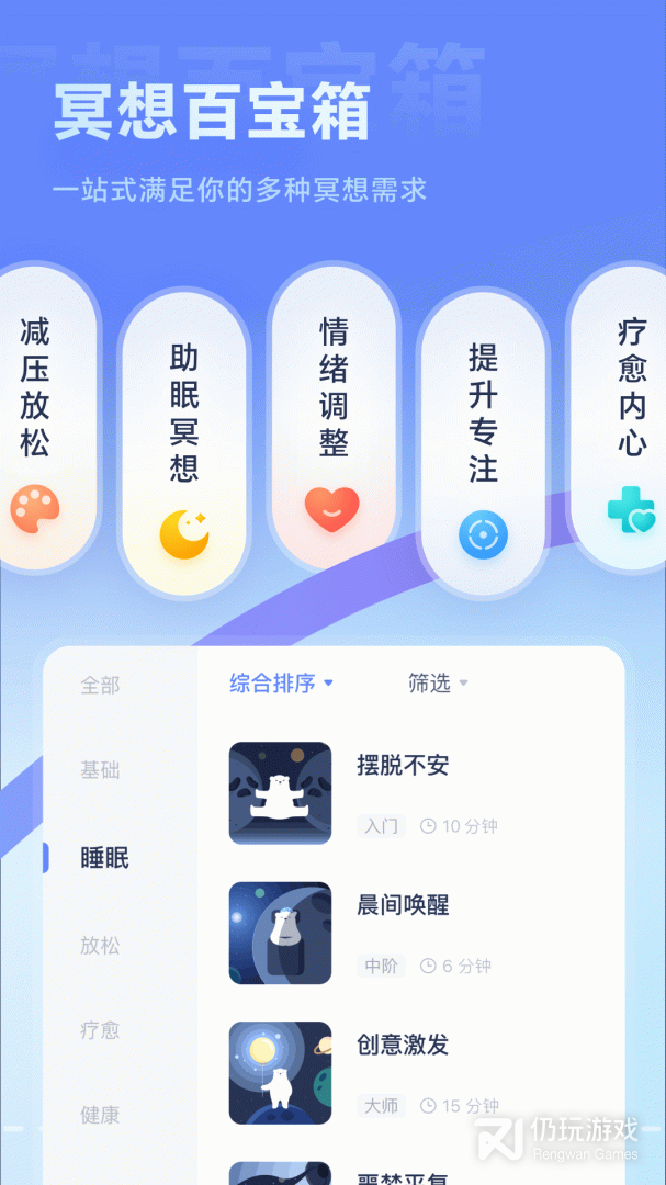 - 主题丰富,涵盖基础入门、睡眠放松、情绪调节等10多个主题,一站式满足所有冥想需求