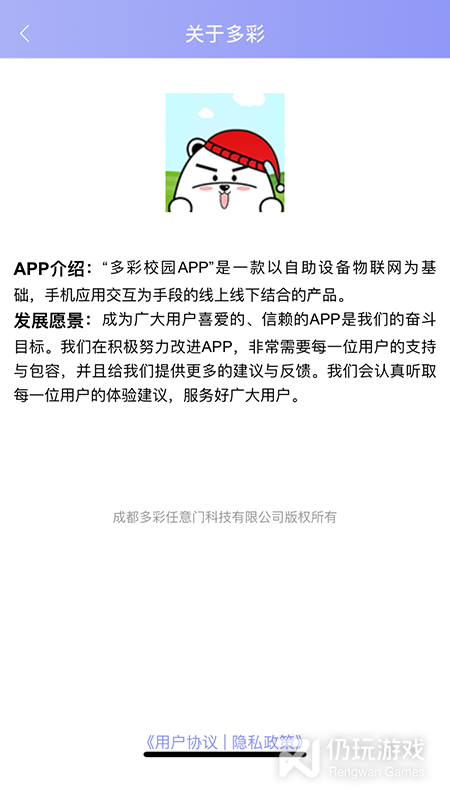 多彩校园是由成都多彩任意门科技有限公司发起的,在大学校园推广自助饮水,洗衣,淋浴吹风服务的用户app。学生可以通过该软件方便的进行在线选择自助设备,在线和支付,体验在线交互及创意交互给校园生活带来的便捷。