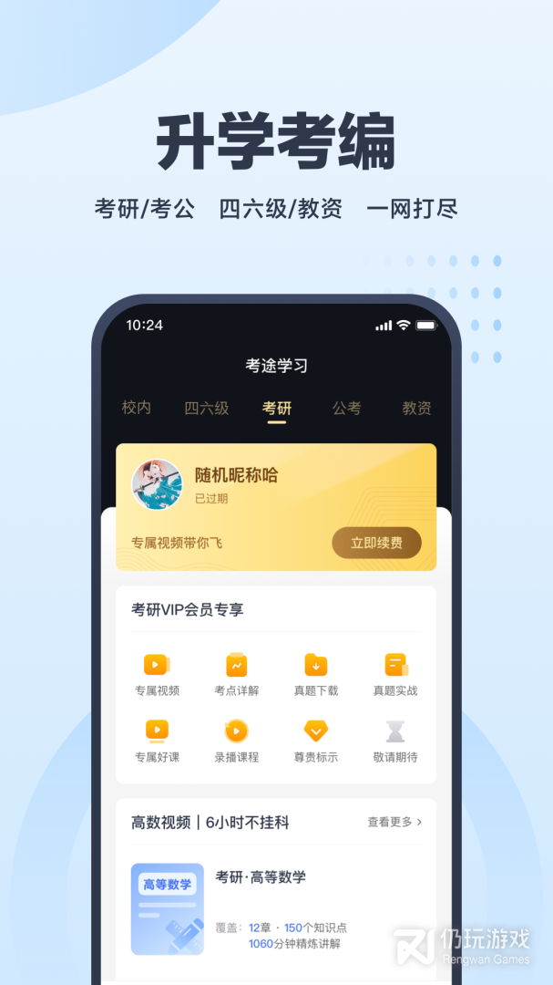 考途是专为大学生们准备的在线备考软件。不管你是想要考证书、考研还是准备公考都可以在这里进行复习备考。历届真题和在线网课都可以免费获取,针对你的学习情况来对你进行专项强化,帮助你提高自身的学习效率,让每一学员都可以顺利的通过考试。