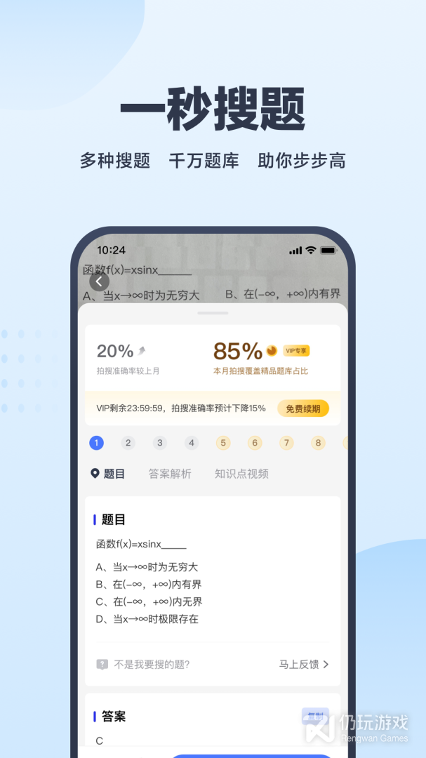 1、拍照搜题:相机对准题目一拍,秒出答案,解题速度我最快