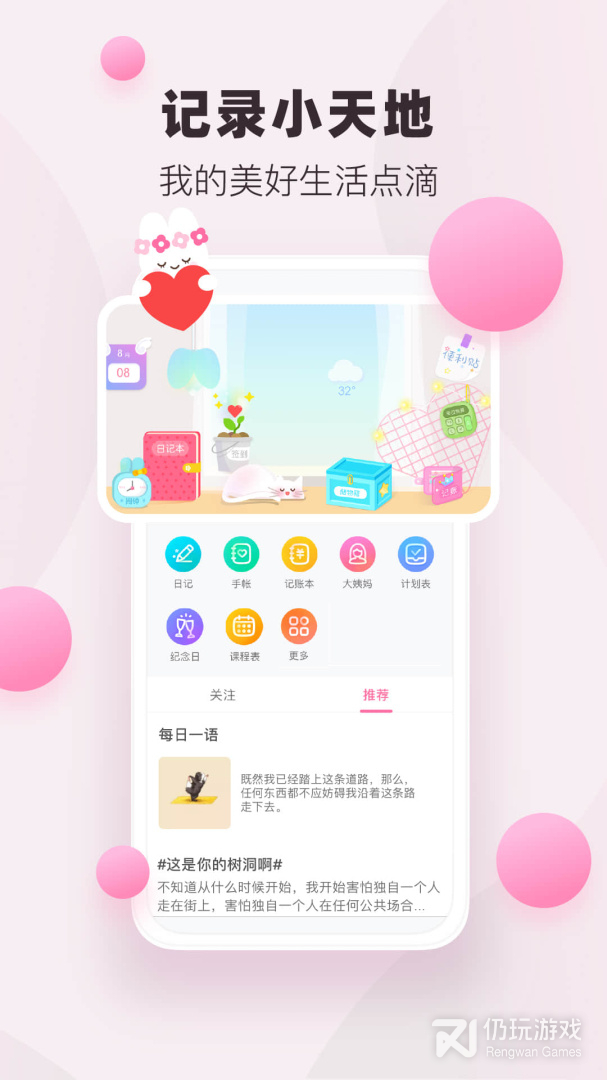 记手帐,写日记,记账便签备忘录,生理经期记录。贴心的记录助手,亲密的生活伙伴。热闹有爱的粉粉社区,交友聊天、兴趣话题讨论、分享情感的空间,期待您的加入。