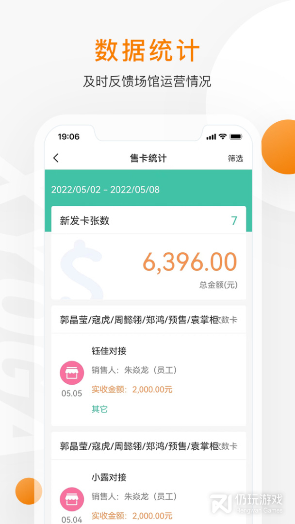 数据统计:售卡统计、耗卡统计、课时费统计。