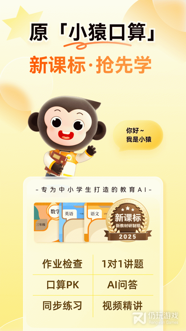 小猿口算APP,可通过拍照一秒检查作业,全面支持小学阶段的语文、数学等科目的多种题型,湖南卫视《天天向上》官方推荐的作业检查神器!
