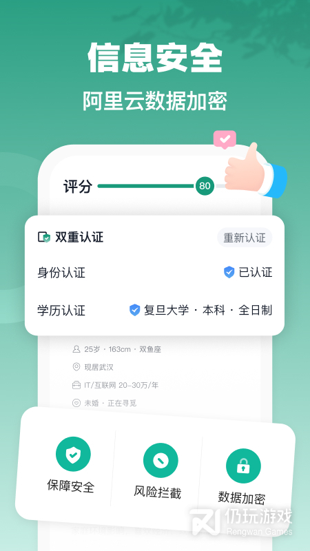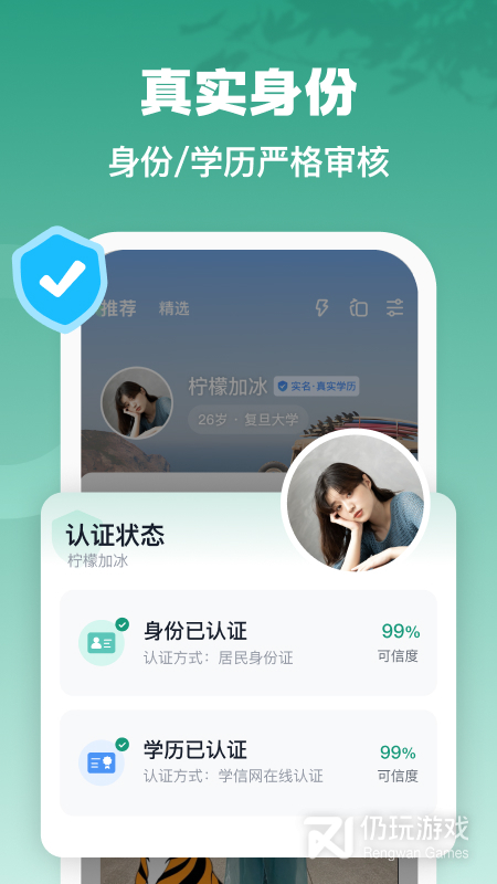 所有用户均需通过实名和学历双重认证才能进行互动,每一次提交相册和资料都会经过后台人工严格审核,真实、丰富,让你更了解Ta!