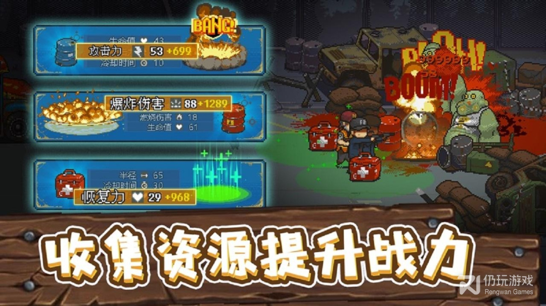 保卫你的大巴,不要让饥饿的尸群吞吃活人!一路冲过障碍,建立战斗营地供你所用。召集你的勇士队伍,派他们去作战,不择一切手段打退渴望吃肉的像素尸群!用桶子.莫洛托夫鸡尾酒和手雷砍杀.射击或焚烧僵尸。可以直接行动,引发爆炸,也可以采用潜行杀死你的对手。