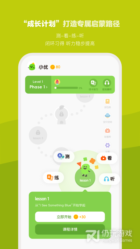 在小小优趣中有正版英文动画被分为4个阶段,方便家长根据孩子水平进行启蒙进阶。