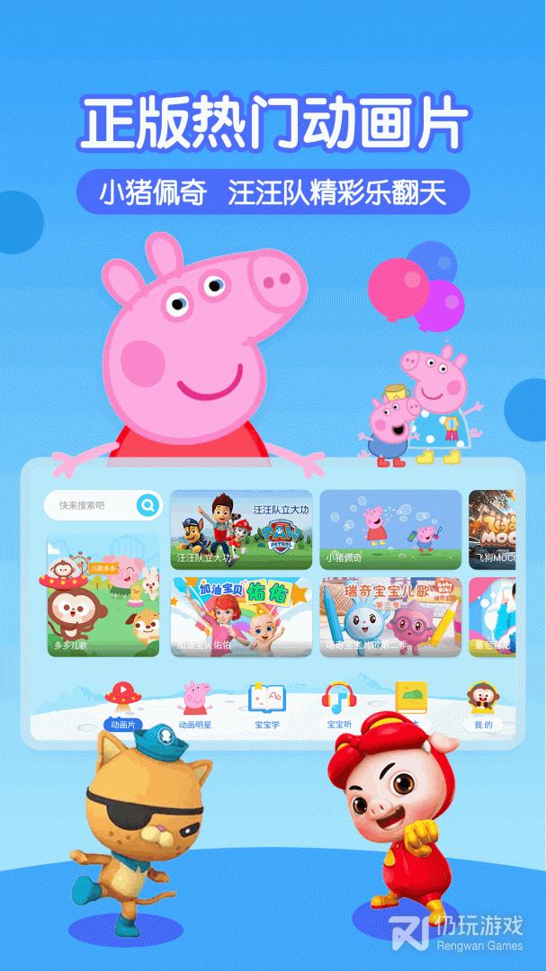 收录整理了海量宝宝爱看的热门动画,火热的小猪佩奇、海绵宝宝、哆啦A梦、倒霉熊、可可小爱、汪汪队、海底小纵队……宝宝们喜爱的动漫明星都在这里等你一起玩耍哟~
