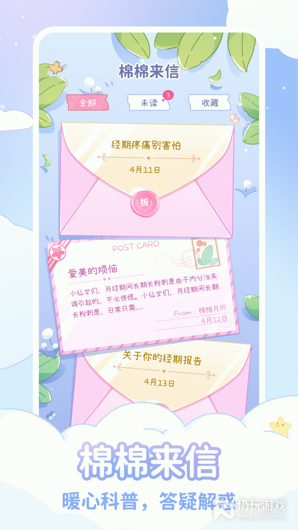 3、梦幻棉棉星球小精灵,提醒例假,解惑成长小烦恼。