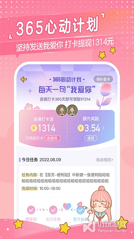 情侣空间:做任务赚金币,一起筑起理想的爱巢。