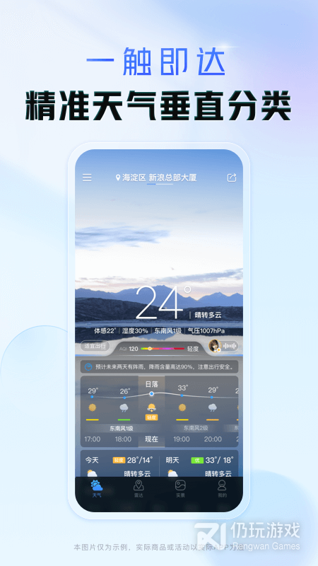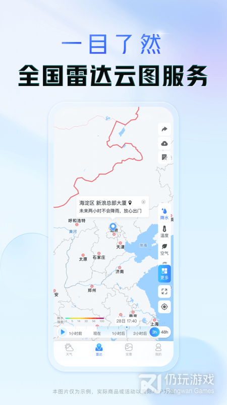4、天气信息与地图相结合,提供周边天气、降水分布、台风路径、交通气象等服务