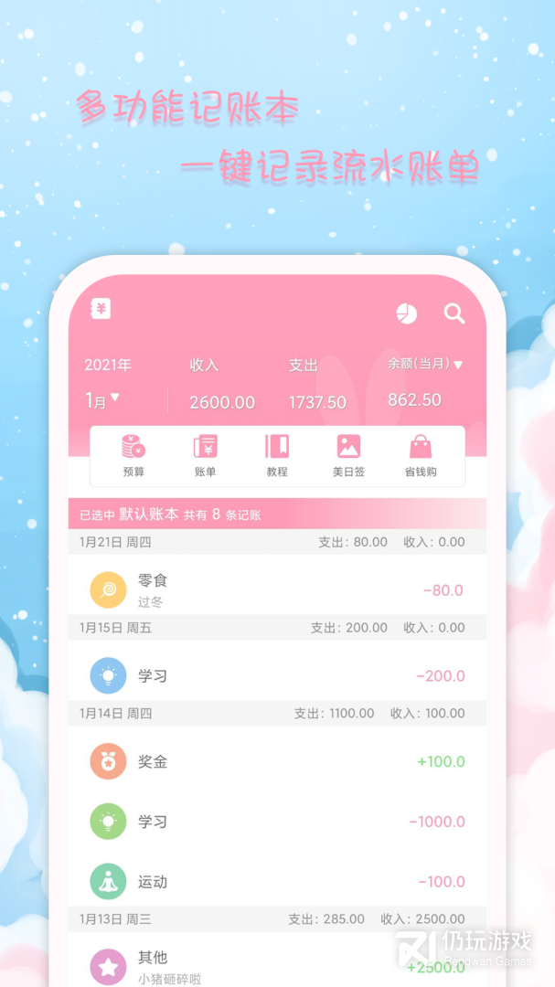 3、记流水:还在为每个月收支手忙脚乱吗?还在月光不知道钱花在哪里吗?来记一笔吧,每天记一记自己的支出,健康管理财务,成为理财小能手。