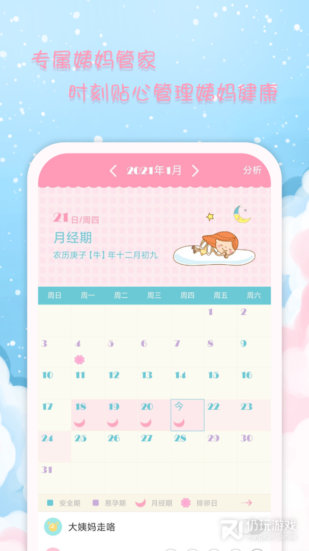 1、经期日历:记录大姨妈,简单方便,再也不用每天记录,让女生日历帮你准确预测大姨妈的日子。