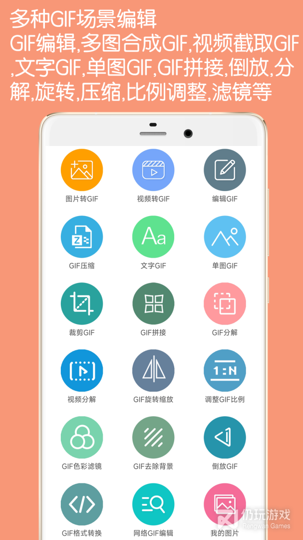 快速制作美化GIF动图,提供图片转GIF动画,视频转GIF,编辑现有的GIF,相机录像转GIF,GIF倒放功能,GIF拼接。