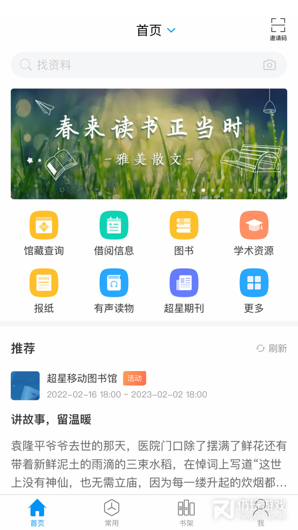 非常方便的图书借阅软件,不管什么样的书籍都可以在这里借阅到,充分满足每个用户的阅读需求。省去了很多去图书馆的时间,对于那些平时工作比较忙的小伙伴来说是非常实用的软件。