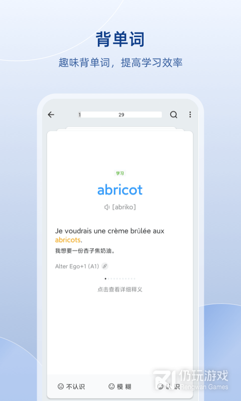 - 准确音标,同时内置真人法语发音、全球各地法语发音让你了解每个单词的读法