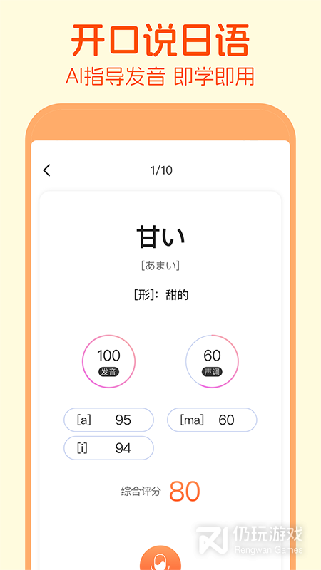 - AI发音打分:给你的日语假名、日语单词、日语短句发音打分。