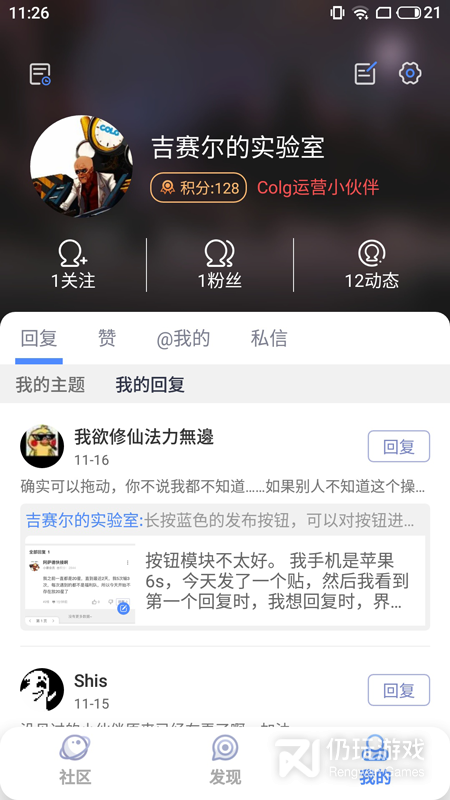 你的手游帖子的评论点在以及收藏都将在此显示。