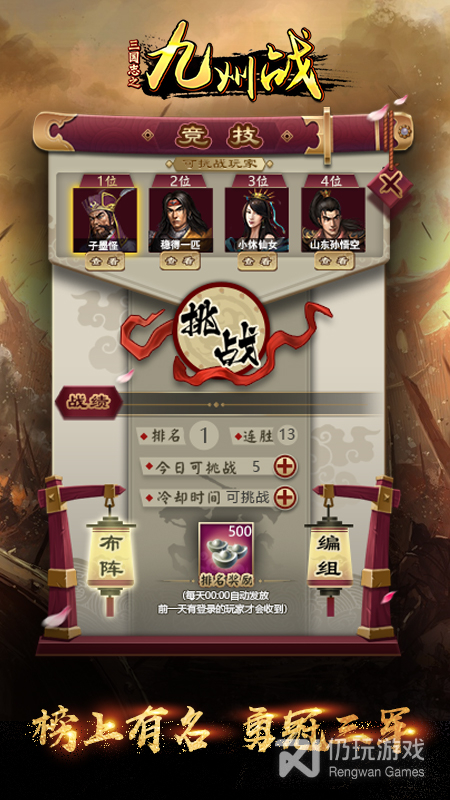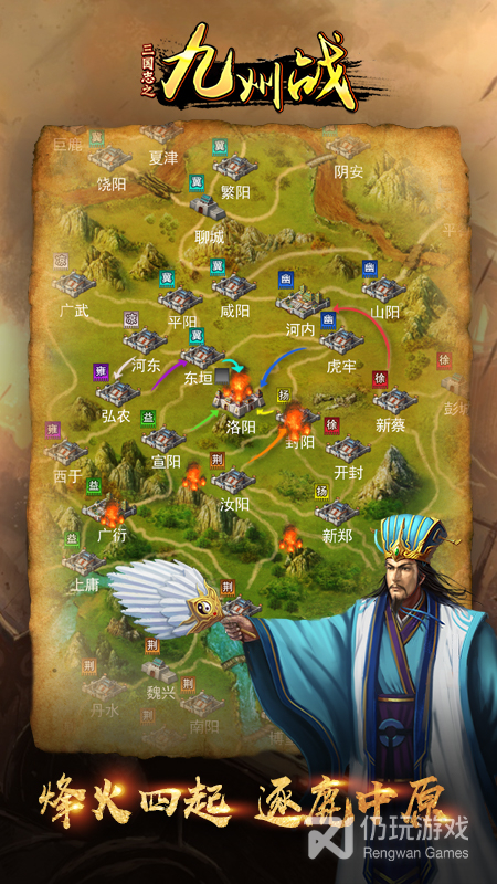 《九州战》是一款以三国时代文化为背景,精美细致的画面风格、真实细腻的游戏场景、恢宏壮阔的战争场面,真实还原三国地图和历史名将,实现十万部队同屏作战,结合模拟建设与战斗策略为一体的策略类手机网络游戏。游戏沿用了SLG经典回合制的战斗模式,拥有丰富多样的策略玩法。