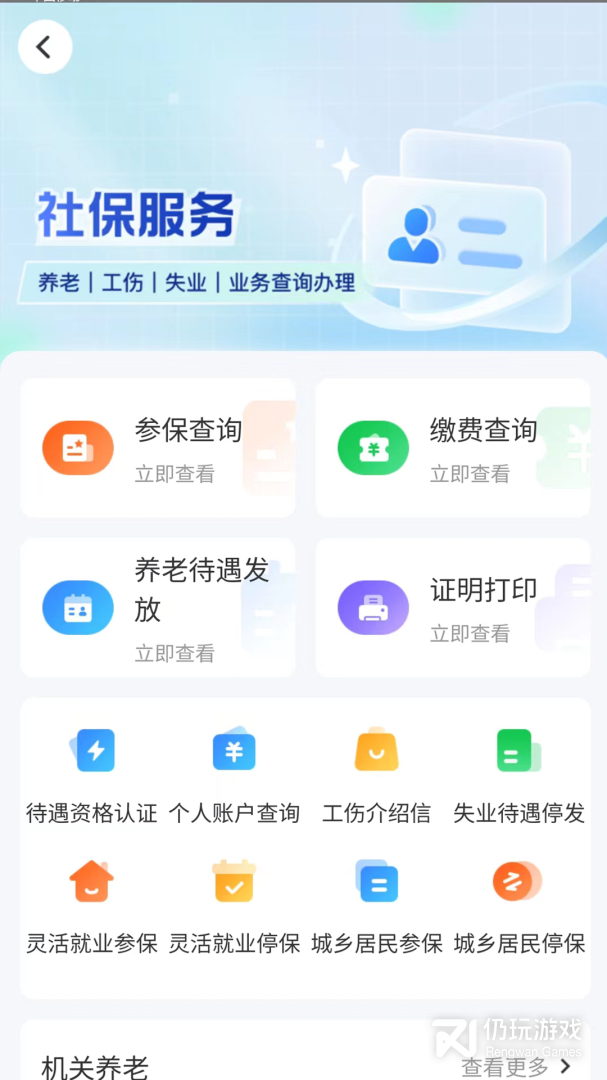 2、社保服务:查询社保的缴费信息,待遇查询。