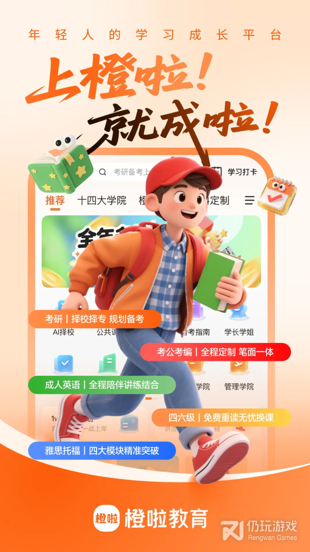 橙啦是一款服务年轻人的高品质学习App,从大学四六级及考研课程出发,延伸至实用英语、家庭教育、职业教育等丰富成人教育课程体系,通过优质直播体验及至臻学习辅导服务每一位学员。