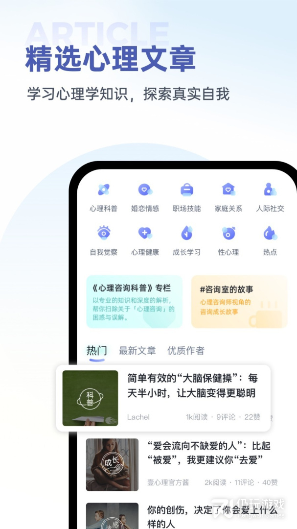 了解心理学知识、社会热点的心理学角度分析,以及大众最关心的职场、婚姻、性、人际、抑郁症等话题;