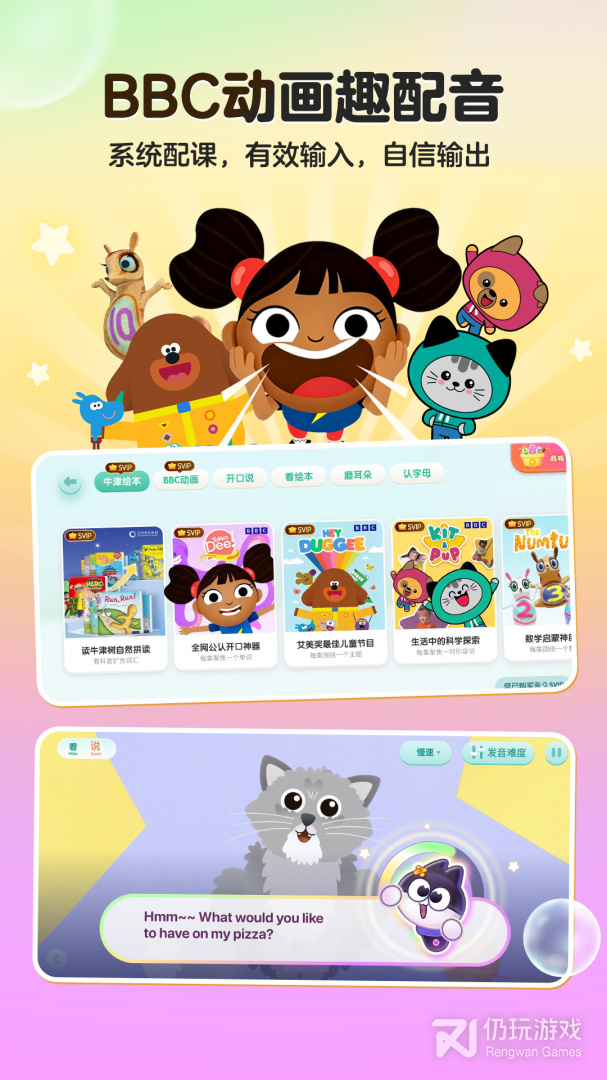 全新5.0版本重磅升级!海量BBC精品动画强势入驻,打造沉浸式英语环境。学习路径全面升级,结合渐进式网络激活教学法,构建了从“输入”到“内化”再到“输出”的完整学习闭环,帮助孩子在趣味探索中实现英语能力的稳步攀升。