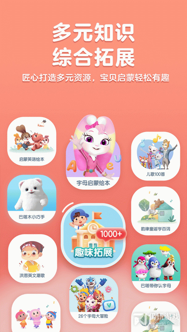 匠心打造多语伴、多场景的高品质教学内容与多样化辅学资源,围绕教学目标定制趣味互动环节。400+外教互动视频、250+分级趣味绘本、200+原创韵律儿歌,丰富的辅学资源,让孩子学有所获。同时,学习搭配线下趣味随材,线上学习,线下巩固,启蒙有趣更有效。