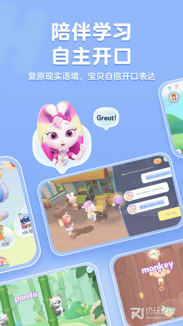 硬核口语城复原现实语境,神奇的小动物NPC模拟第一人称口语对话,感受身临其境的沟通体验;
