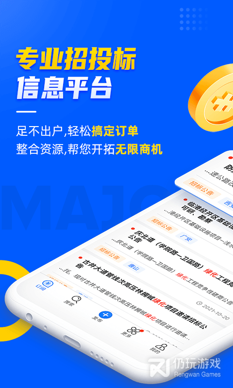 通过手机可以随时查询搜索您关注的招标采购信息和拟在建项目信息。
