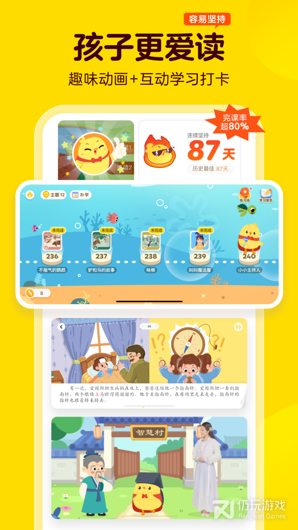 游戏化的学习方式及激励机制,保证学习动力。
