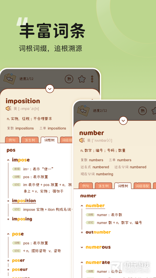 ● 记得牢:拥有海量的词根词缀,按五个格子记忆法和艾宾浩斯遗忘曲线同时定期复习,萌鼠每日上线提醒你打卡