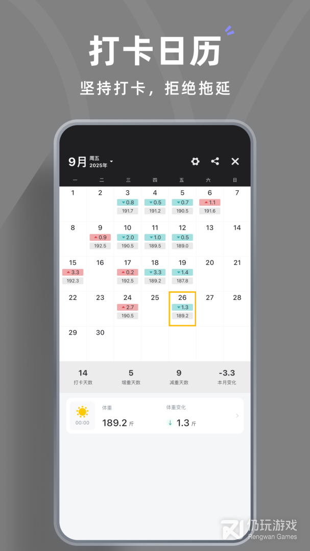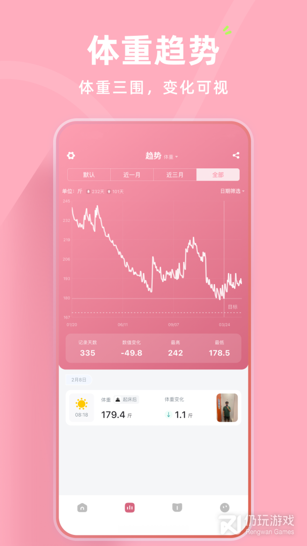 2、每天都可以记录下自己的体重变化,了解体重变化情况。