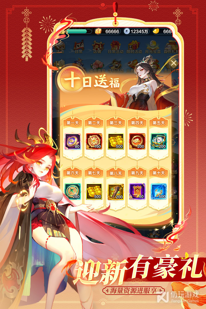 1、四族百将,稀有神仙全收率,天天免费十连抽