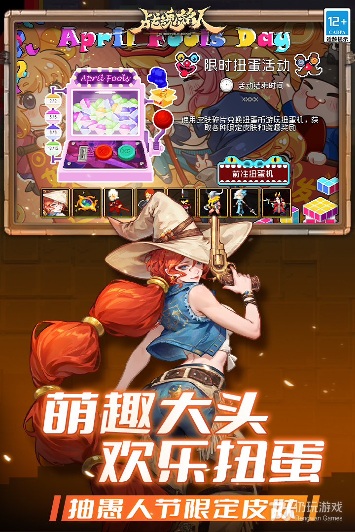 愚人节主题扭蛋机来啦,皮肤碎片换取扭蛋币游玩!扭蛋内容主要包含: