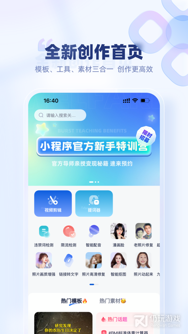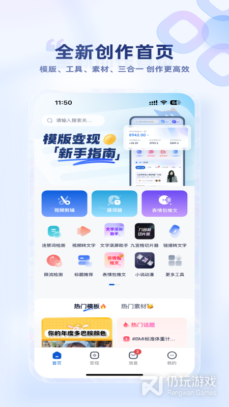 创作猫是可以让每个人都轻松创作出优质短视频的软件,是可以让那些短视频创作者们将自己的创意轻松变现的平台。软件内包含了众多非常实用的视频创作工具,海量的视频素材和模板,让用户可以用更加简单和便捷的方式来进行视频创作。