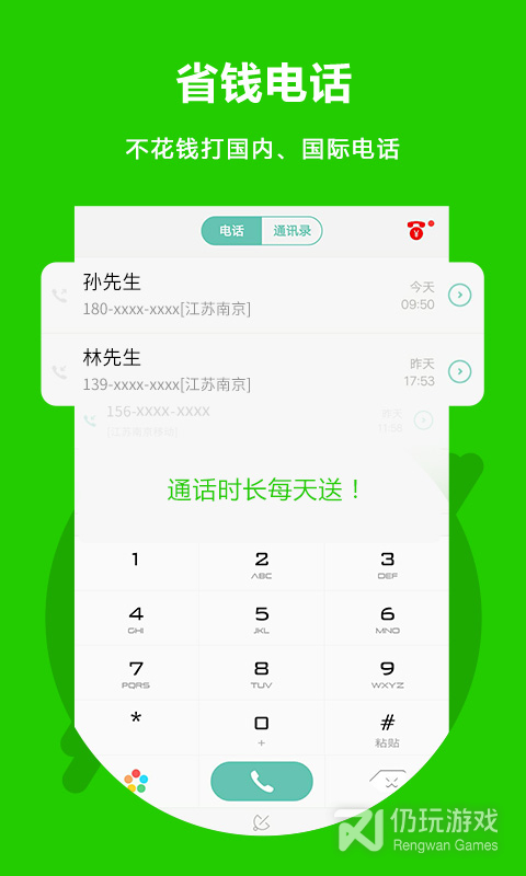 可拨打国内和全球200国家地区电话,对方不需要安装!