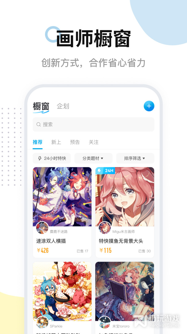 米画师是为企划方与自由插画师量身打造的专业约稿服务平台,这里提供安全的交易担保、高效的稿件管理工具以及便捷的云端同步功能,可以在这里获取到不同的美术需求,为您带来与众不同的约稿体验,快速解决各种美术外包需求。