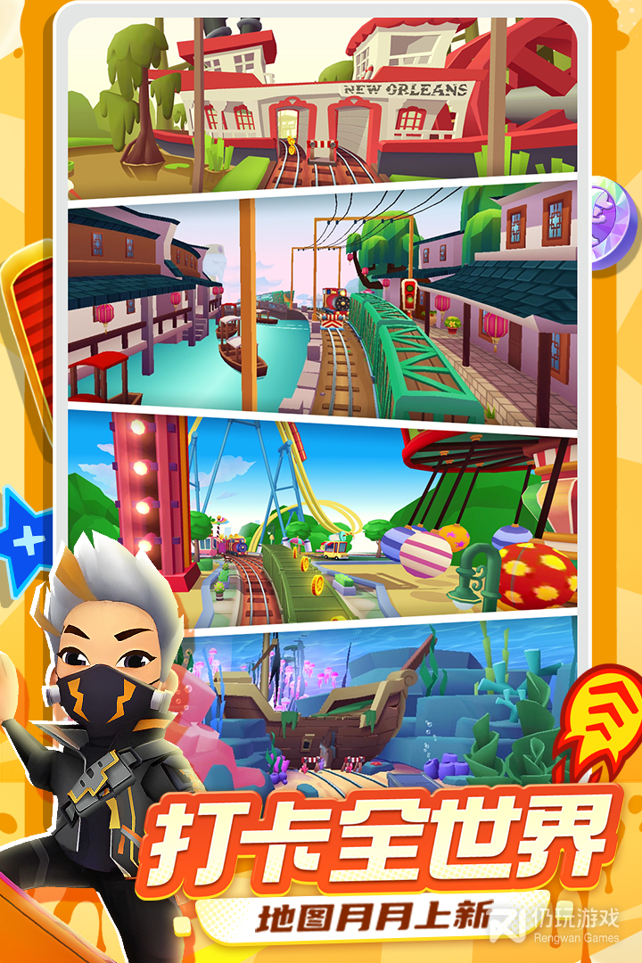 地铁跑酷最新版是由乐逗游戏发行,全球玩家超过10亿人的跑酷手游,世界之旅来带金融中心芝加哥,杰克又将踏上新旅程,游玩繁华的城区,沿路看到快餐店、博物馆和巨型摩天轮,更可以带上香气四溢的热狗滑板,开始愉快的旅行。