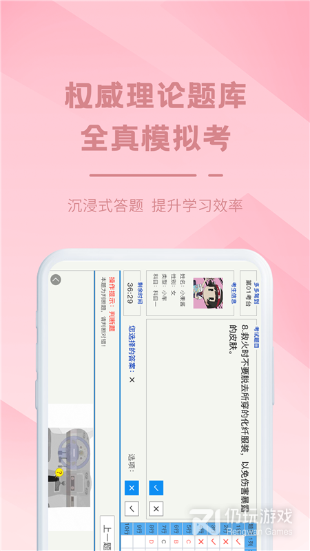 紧扣教学大纲和考试要求,提供权威的理论题库。真实考场模拟,提前熟悉考试模式,提高答题效率及质量。智能分析答卷,预测通过率,精准直击弱项,轻松通过理论考试。